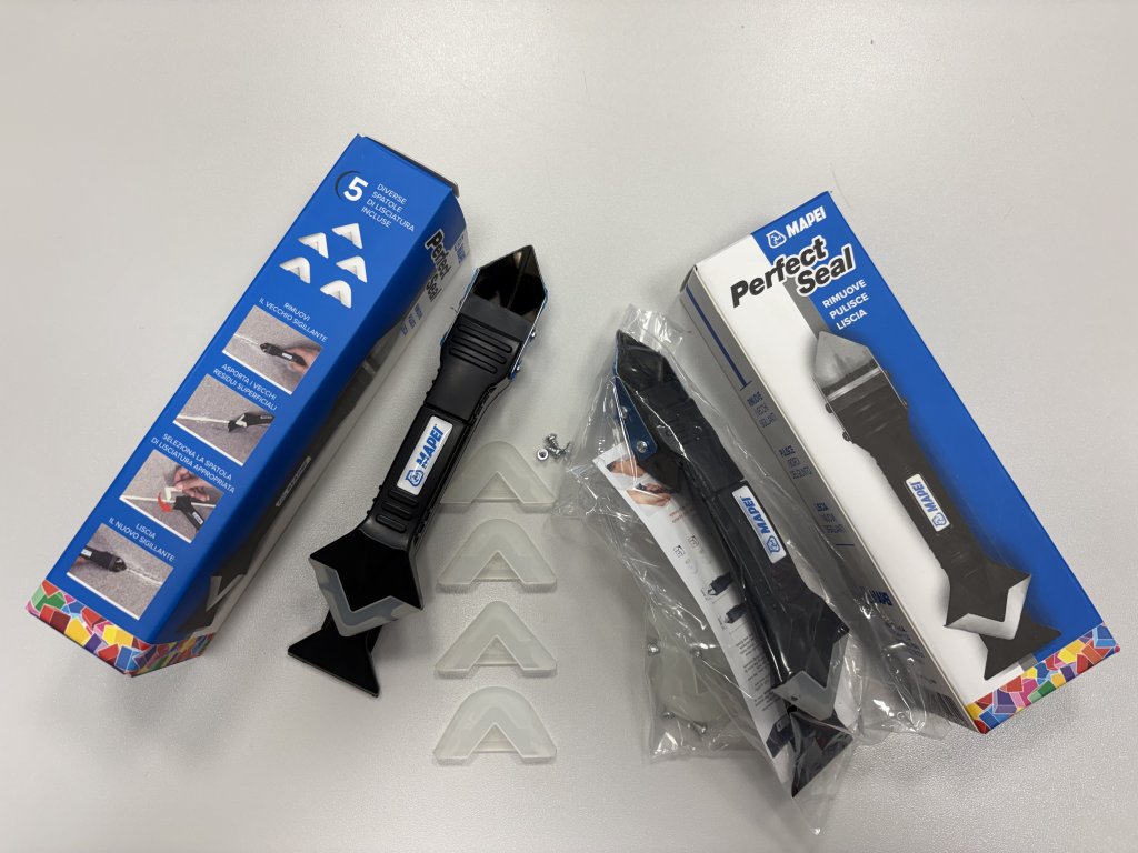 Mapei Perfect Seal je multifunkční ruční nástroj určený pro odstraňování starých tmelů a vyhlazení nově nanesených silikonových a jiných těsnicích hmot. Slouží pro renovaci spár v koupelnách, kuchyních i dalších interiérech