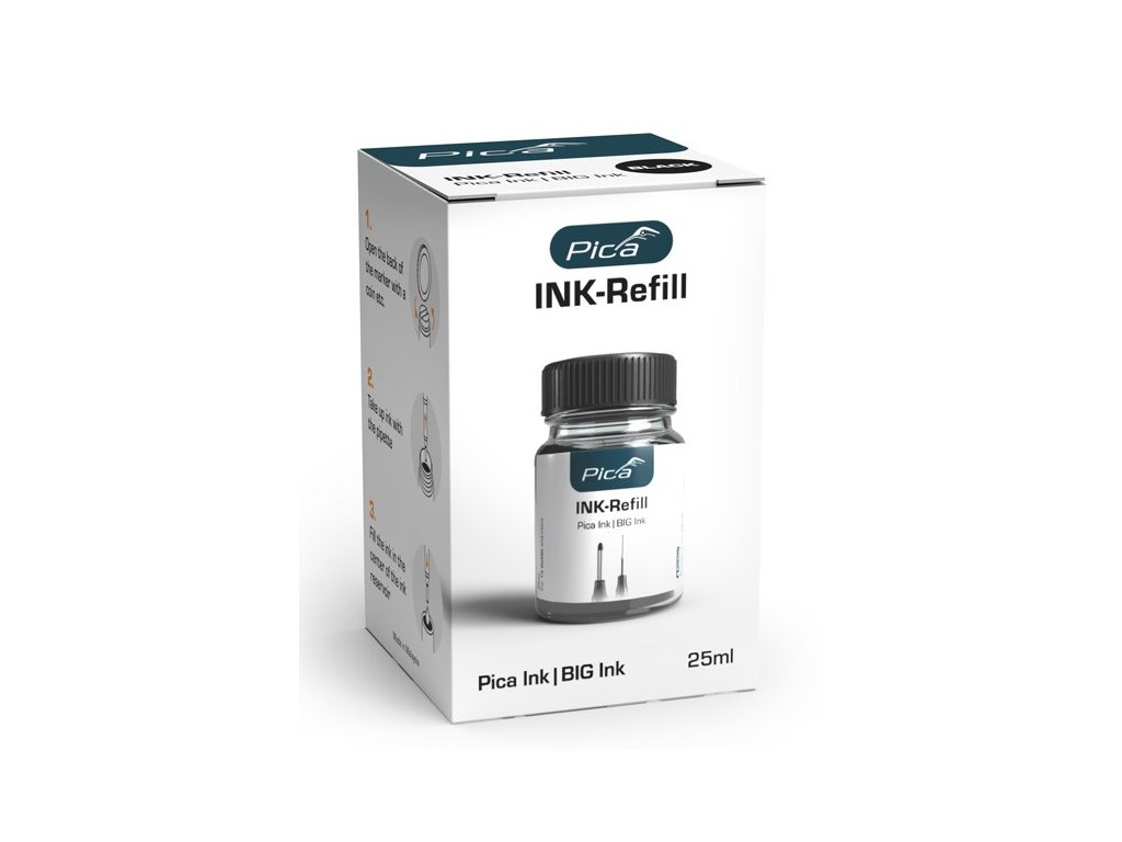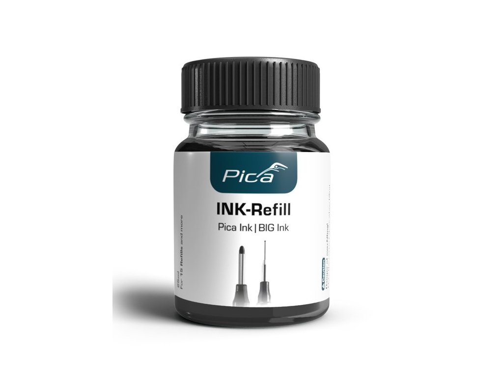 náhradní inkoust pro značkovače Pica Ink 150 a Pica Big Ink XL 170snadné doplnění inkoustu pro opakované použití značkovačeskleněná lahvička s inkoustem o objemu 25 ml pro 15 a...
